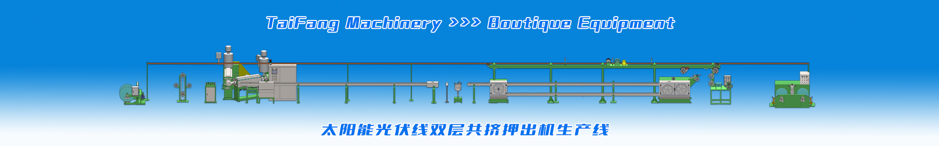 適應于生產太陽能光伏電纜、低煙無鹵料電纜、輻照電纜、XL-PE交聯聚乙烯電纜,主要有高速絞線機、雙層共擠及串聯生產線設備。